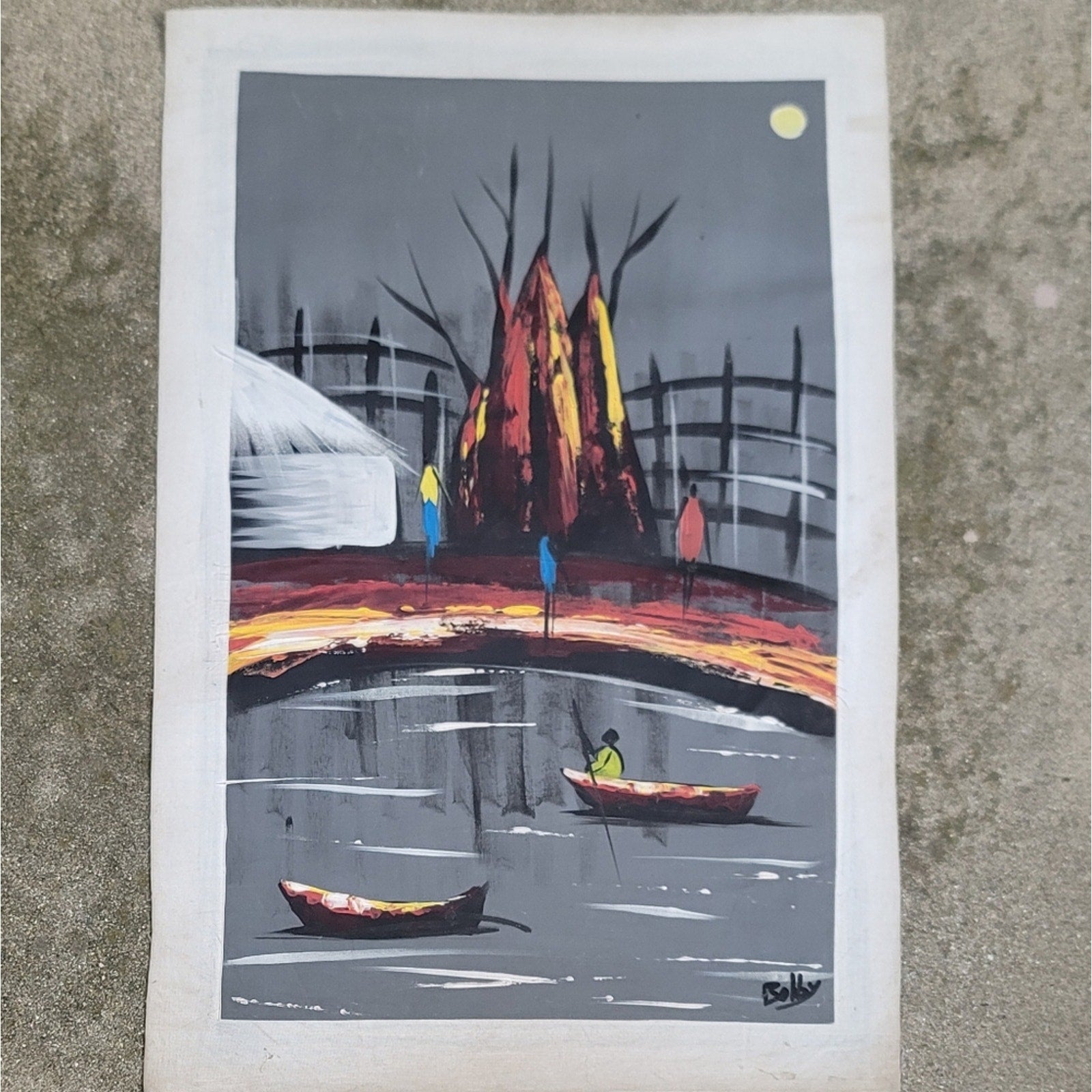 Purchased in Ghana West Africa. Custom canvas oil painting. Will be shipped unframed, folded to save on cost. Borders may have marks, which is how they were when purchased.