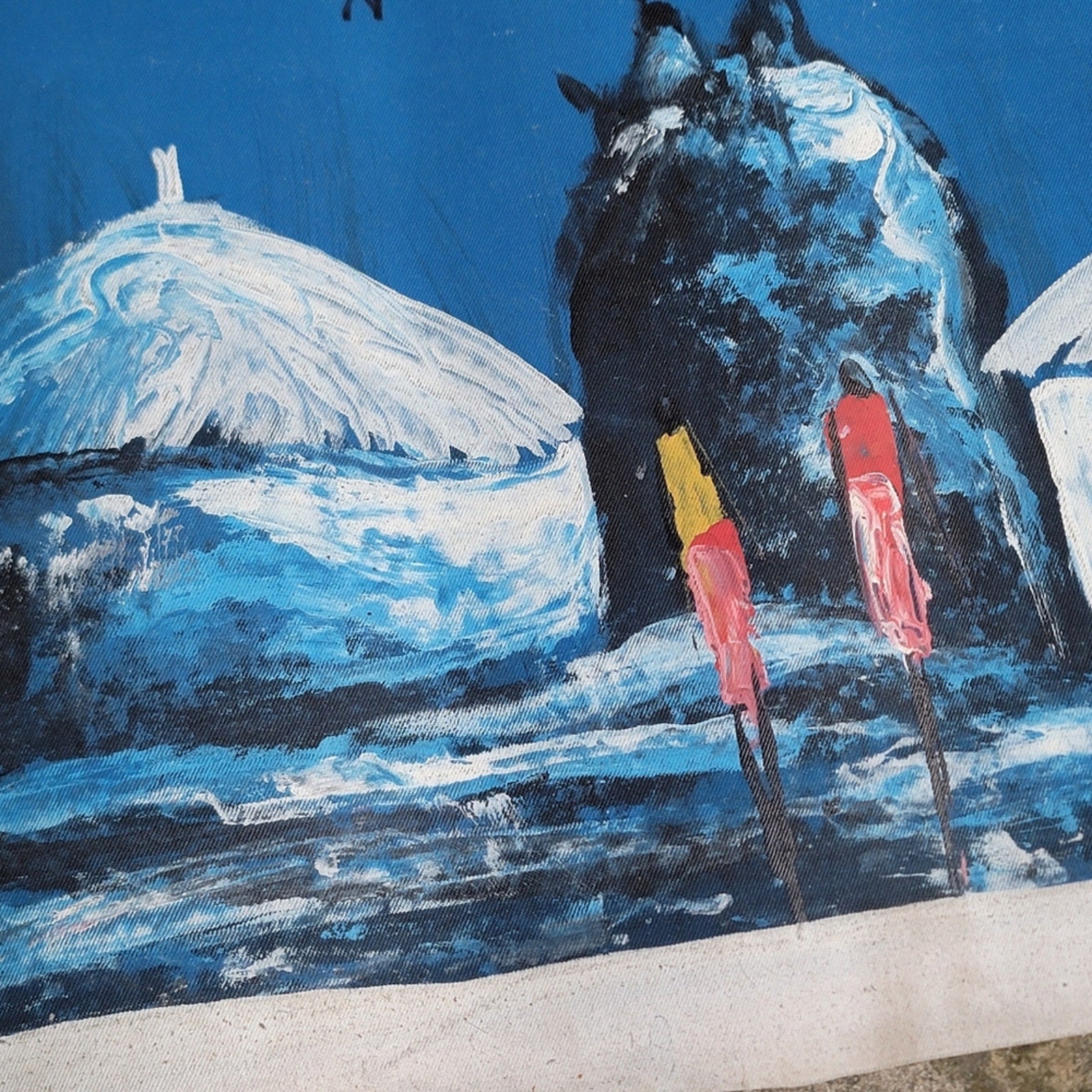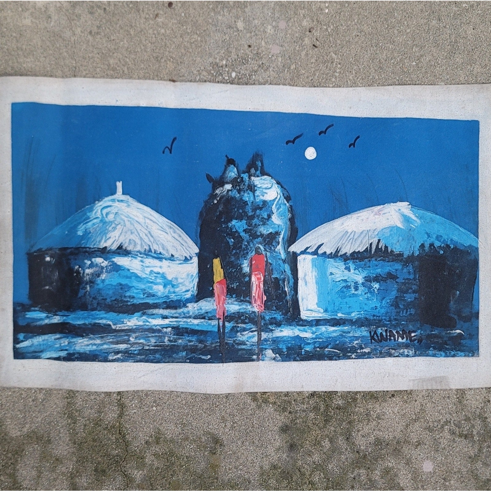 Purchased in Ghana West Africa. Custom canvas oil painting. Will be shipped unframed, folded to save on cost. Borders may have marks, which is how they were when purchased.