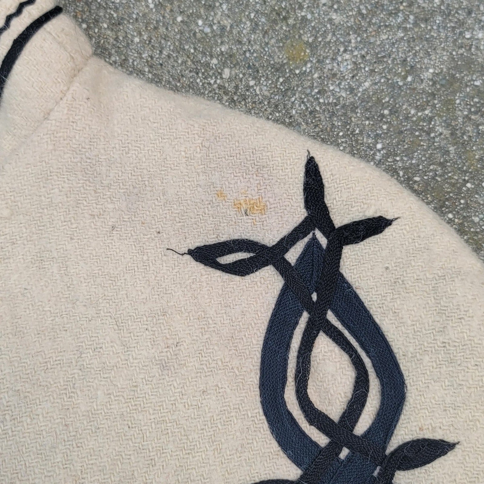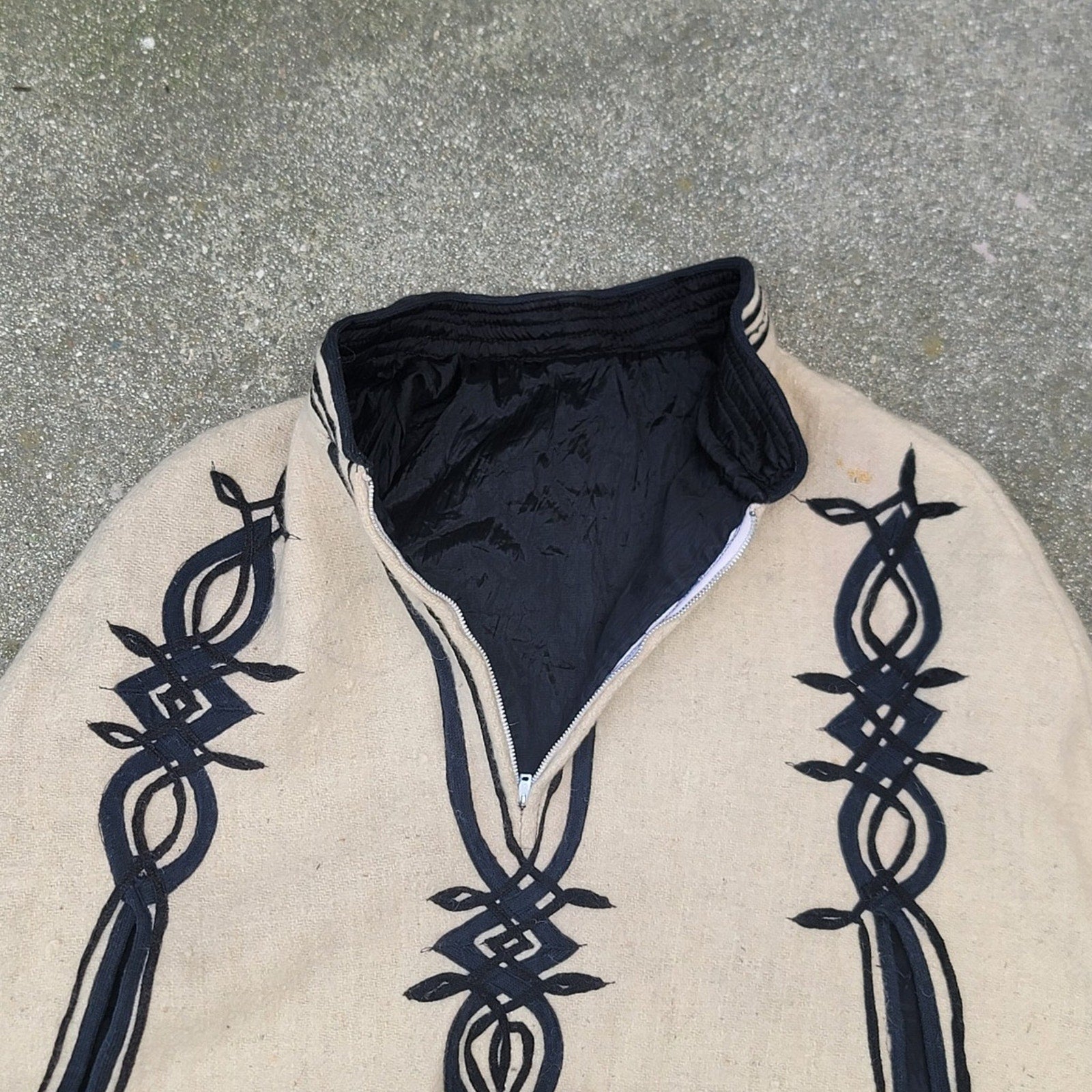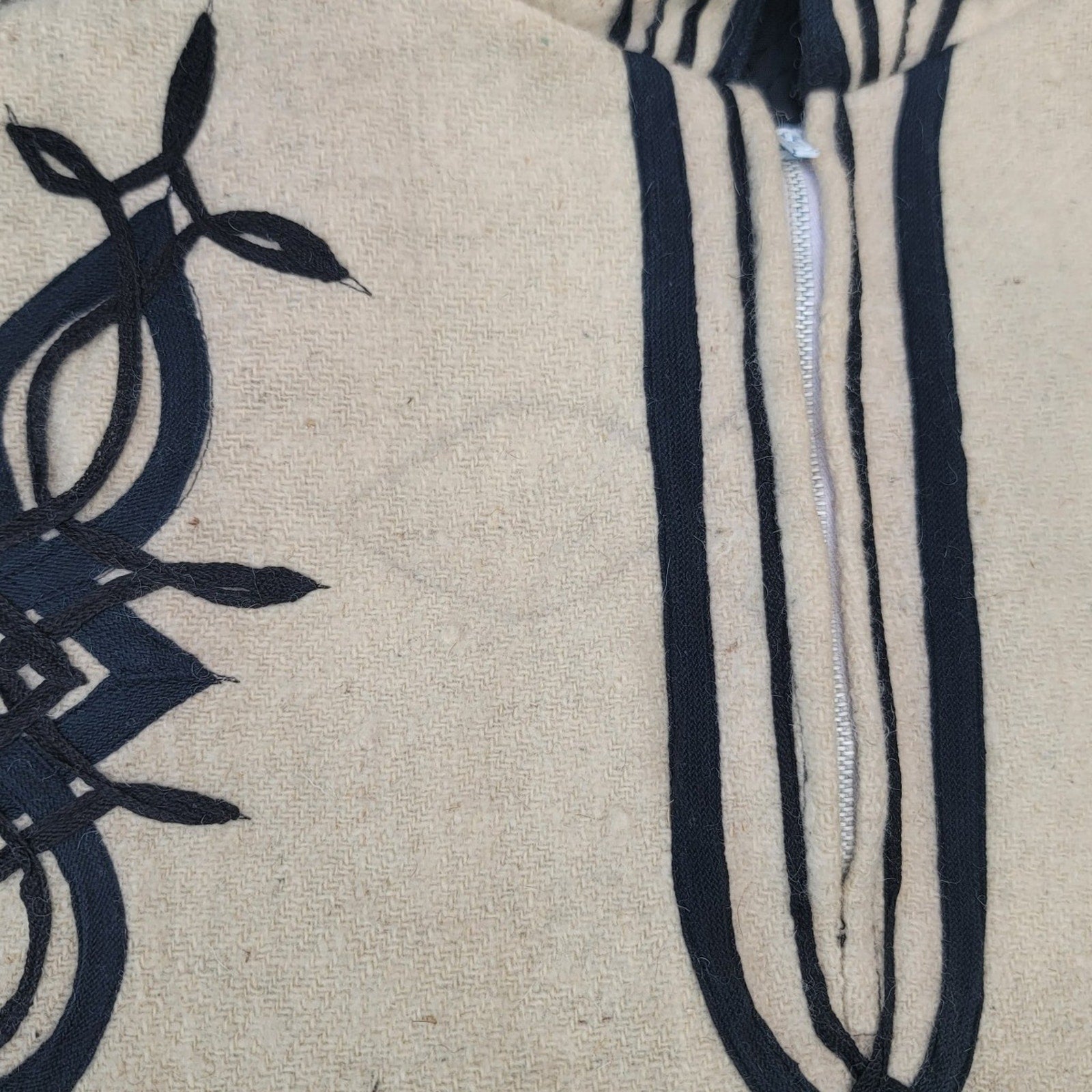 Good Condition. Has two slits for hands/arms. Has a few marks and minor signs of wear. No brand/size tag. One size fits all. 1/3 zip front. See pics for condition and measurements below