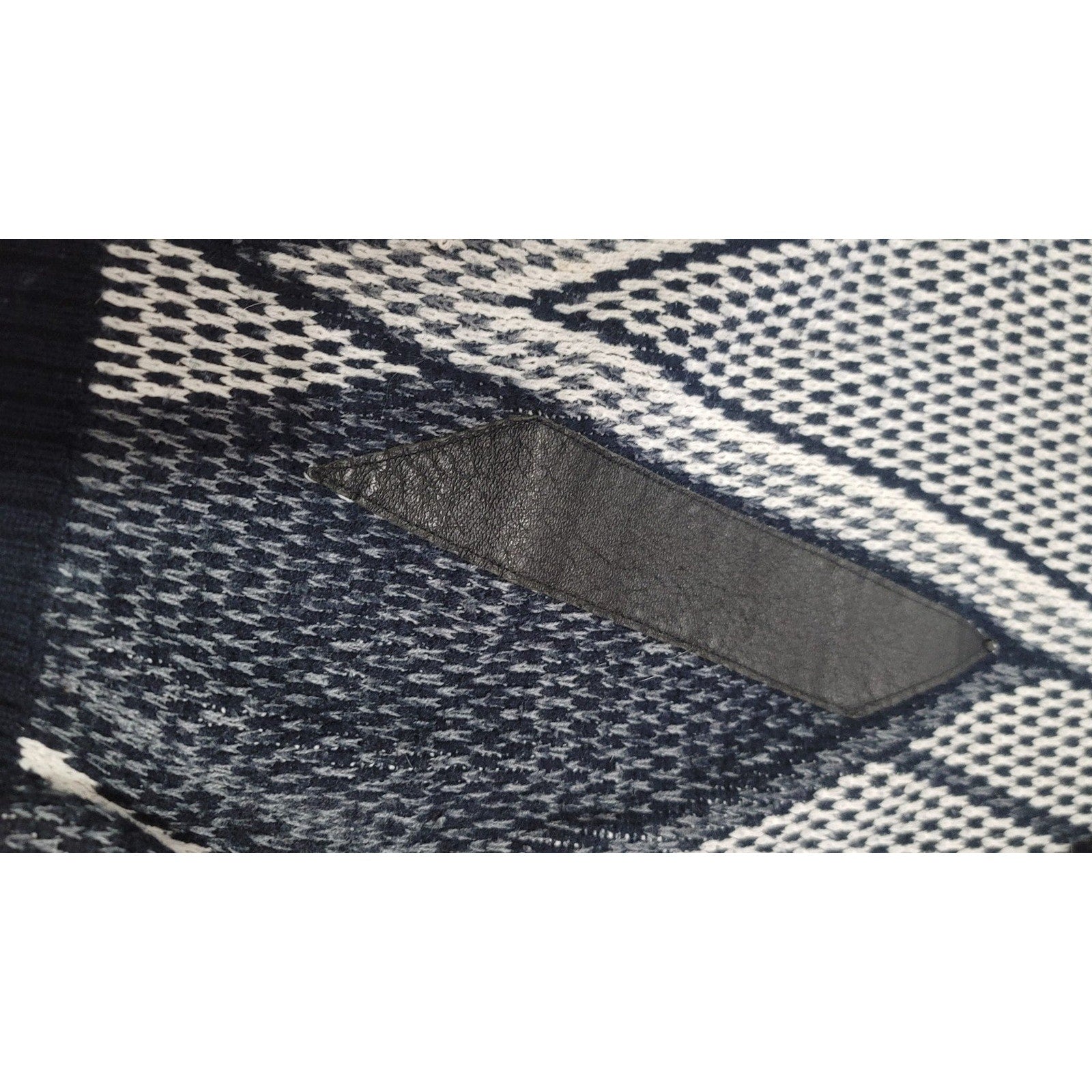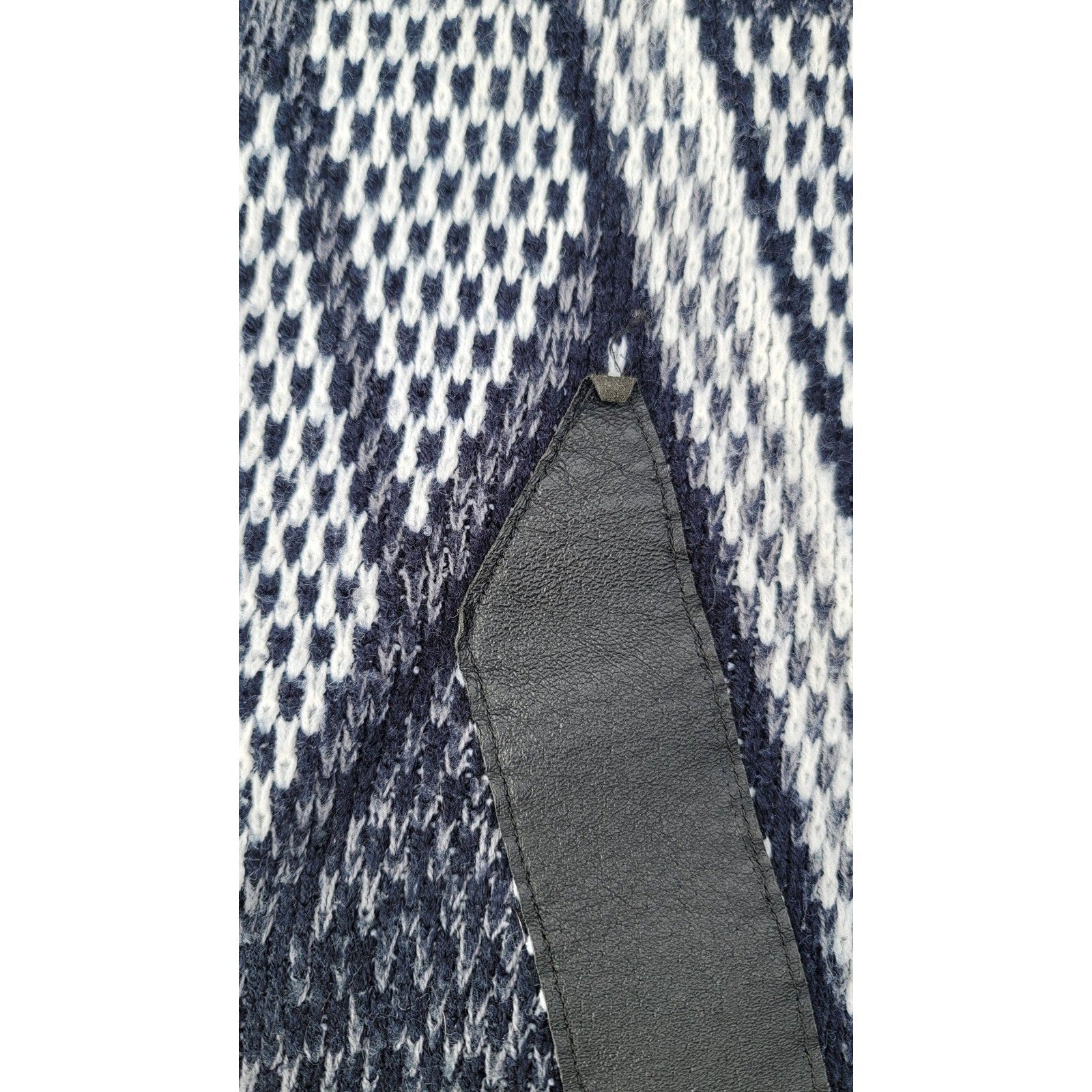 Good Condition. 100% Acrylic, with Leather accents. Size Medium. Could use a little cleaning. See pics