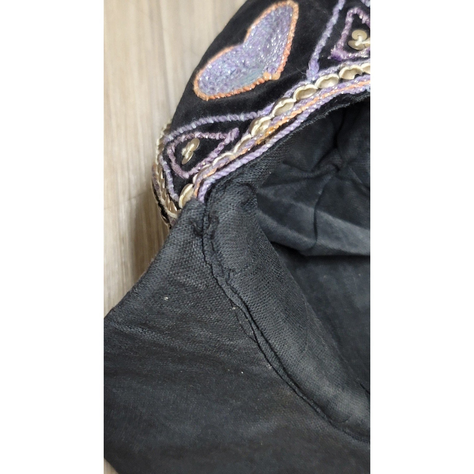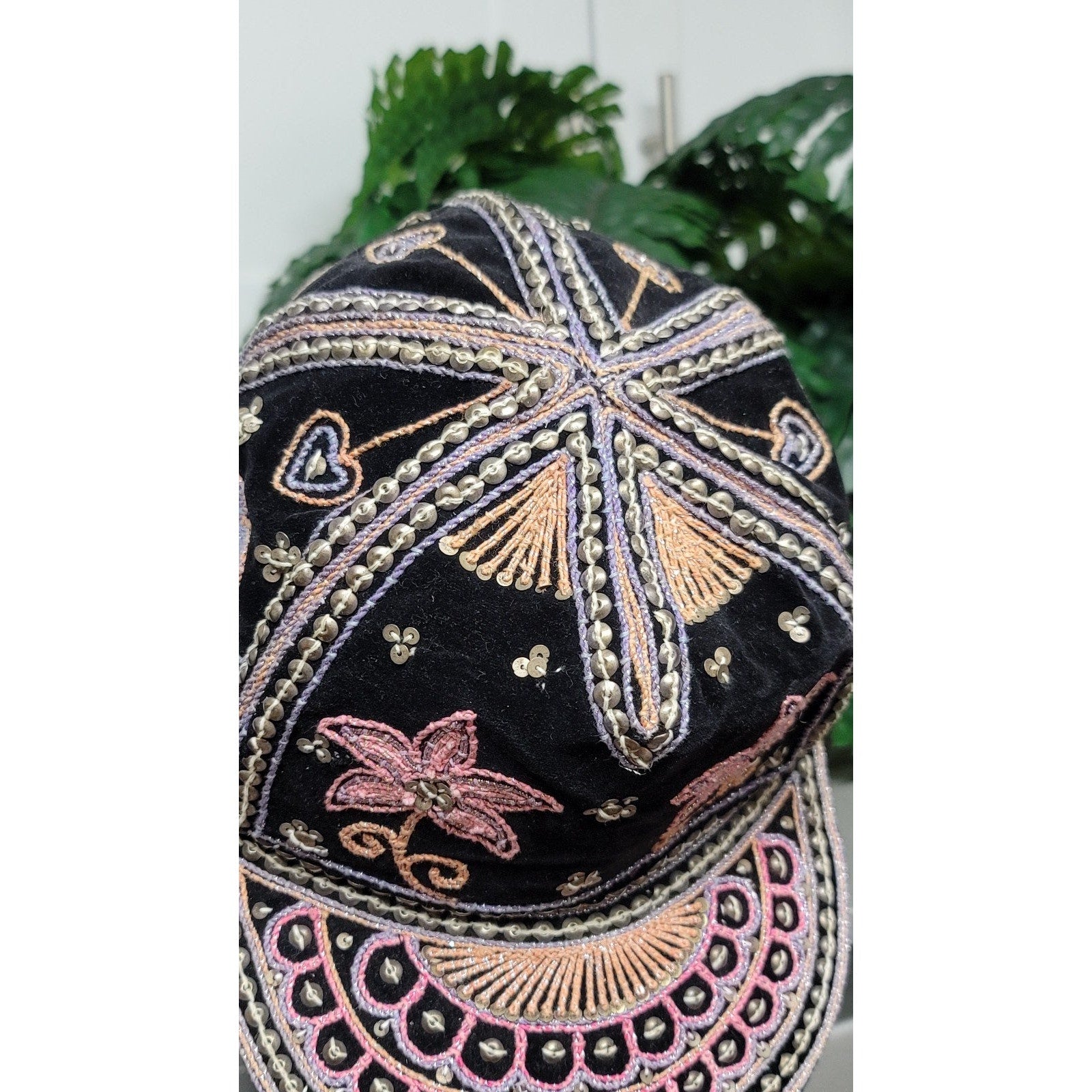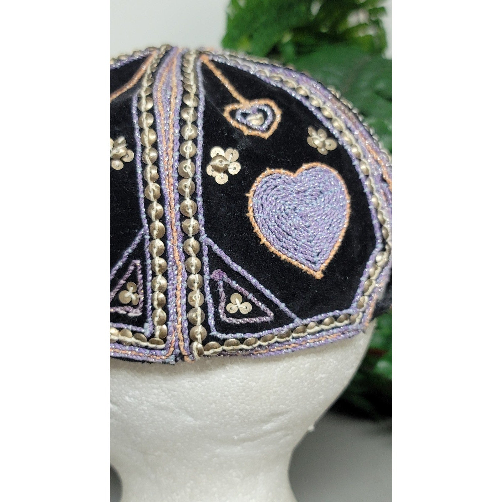 Vtg Burmese Custom Velour Embroidered Hearts Flowers Hat