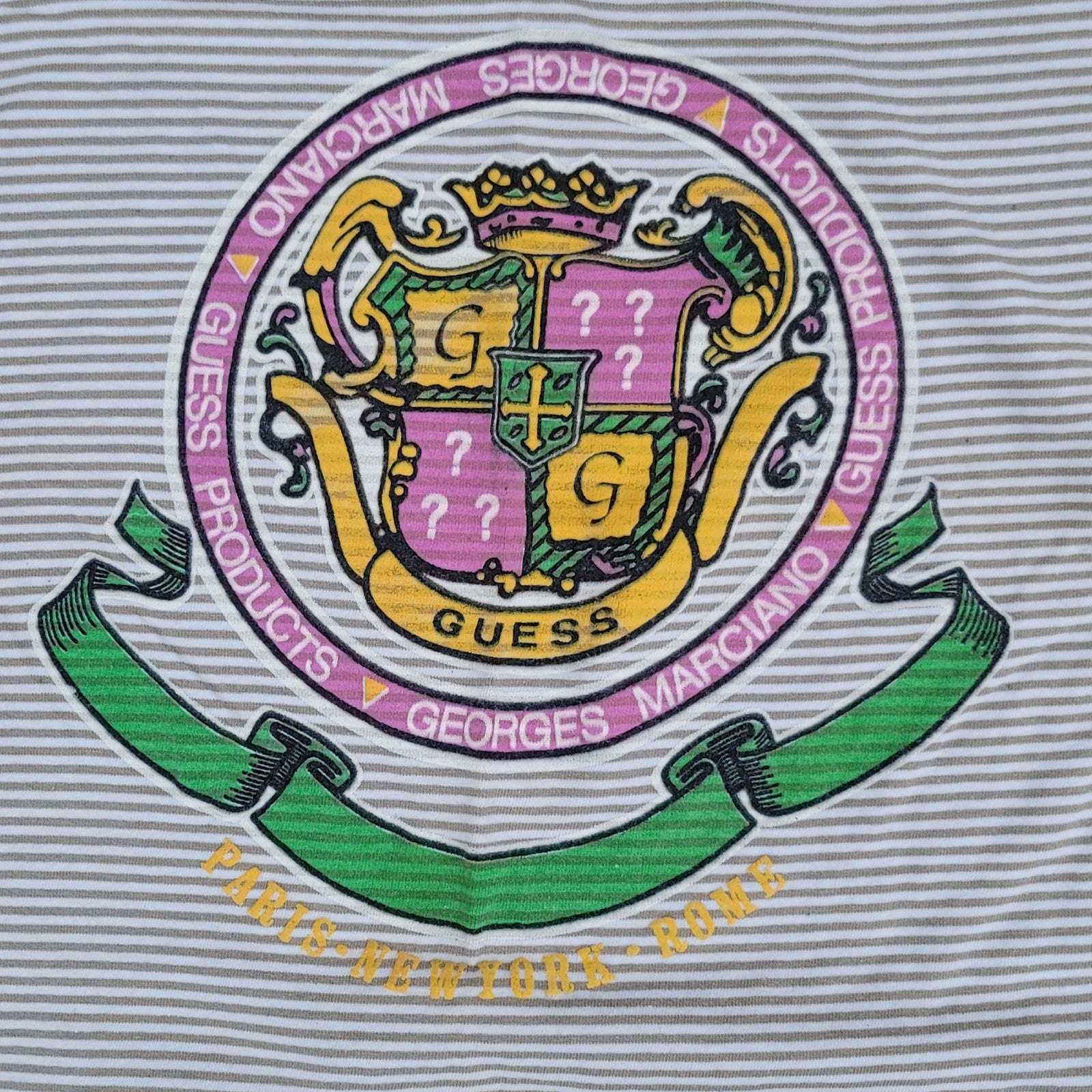 Vtg Georges Marciano GUESS Striped Single Stitch Crop T-shirt