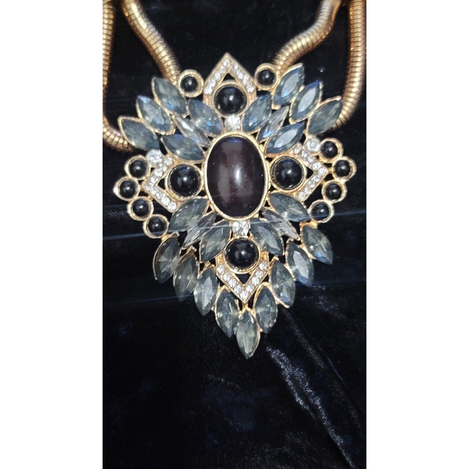 Great Condition. 19" necklace length. 3.5" attached Rhinestone pendant. See pics