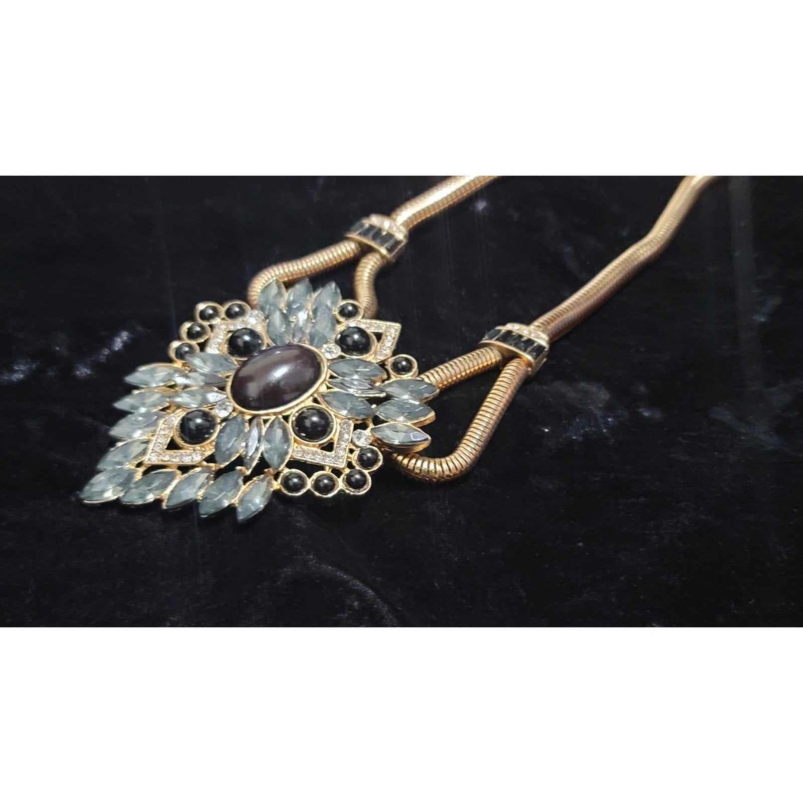 Vtg Gold Tone Necklace With Large Rhinestone Pendant