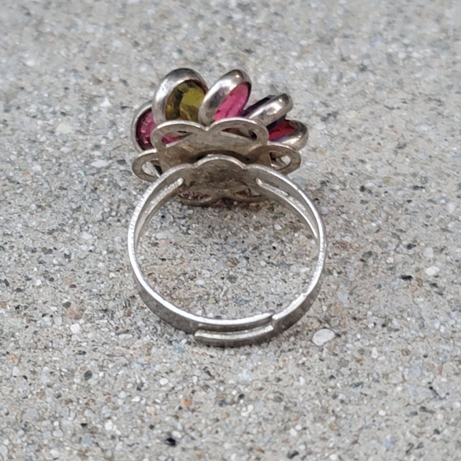 Vtg Silver Tone Gemstone Spiral Flower Ring